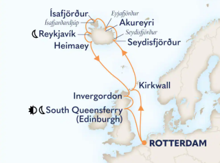 Een 15-daagse Cruise naar IJsland in 2026 via Noorwegen en Schotland via Ålesund, IJsland en Schotland met de Holland America Line en in 2027 via Schotland en de Kirkwall (Orkney eilanden).