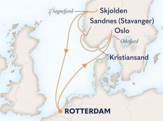 Rotterdam,Skjolden, Stavanger, Kristiansand, Oslo, Rotterdam
