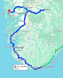 - Dag 3 t/m 5: Kristiansand-Stavanger, ca 235 km.